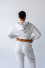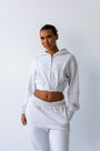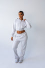 Maximum style, minimum effort. Update your sweats this season with our most popular oversized tracksuit. Our crop hoodie features a distressed, cinched waist band which flatters your natural curves, ruched cuffs and our embroidered logo across the front. The large hood with our embroidered bow detailing along with a zip is a must for those perfect hair days! These hoodies are an everyday essential, from lazy days to running your daily errands!